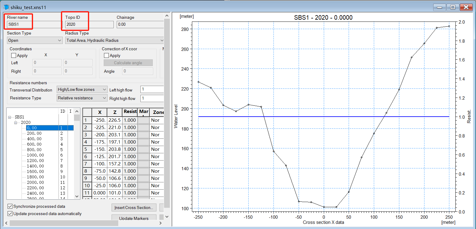 导入构建好的断面文件:file,import,import rawdata&recompute,里面river name和topo id要和河网文件(nwk11)保持一致
