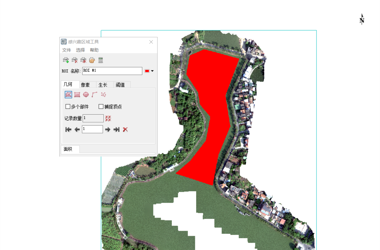 ,确保当前视图为提取的高光谱图像,选择多边形框选区域,框选至最后一点后双击起始点完成
